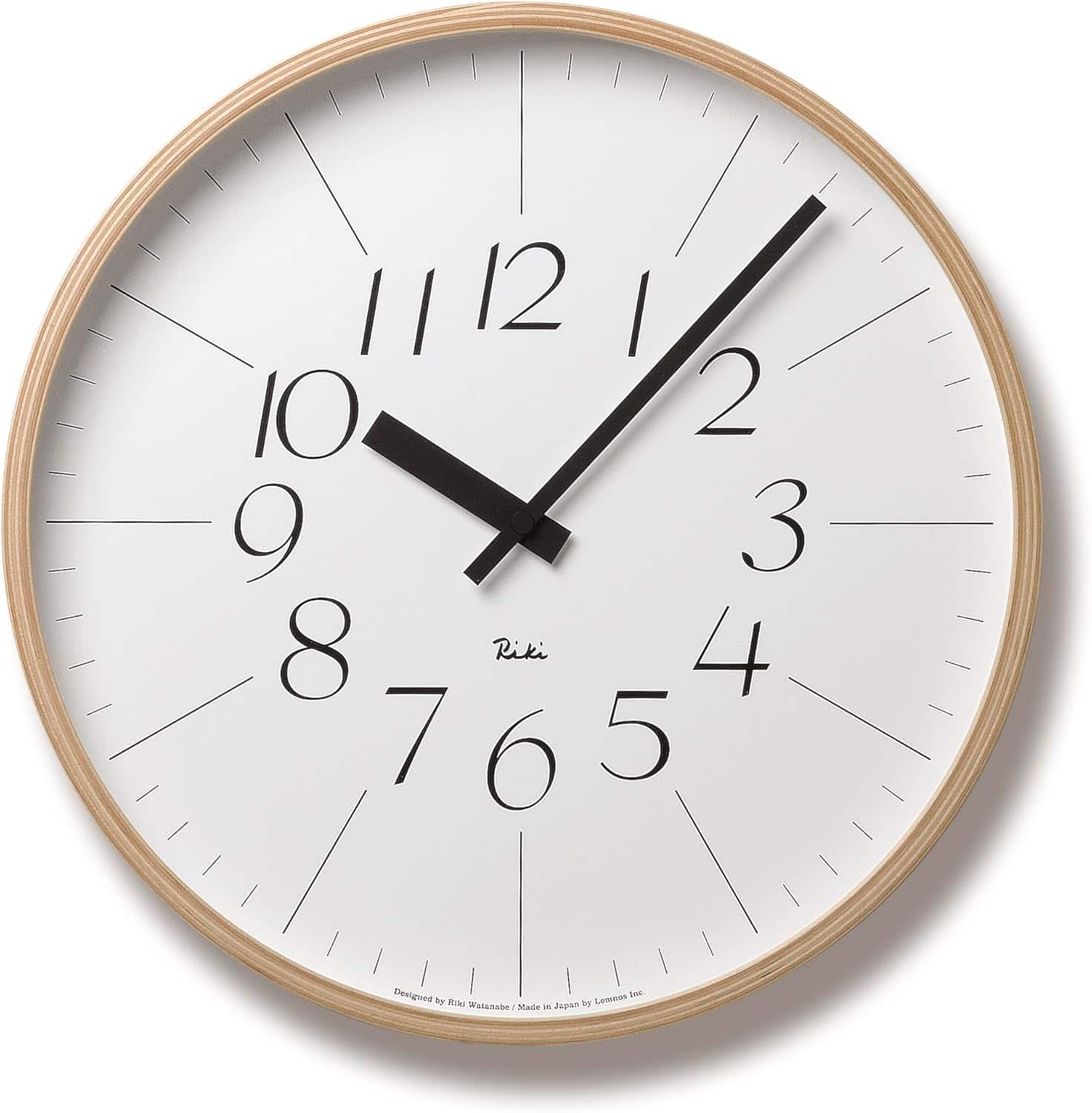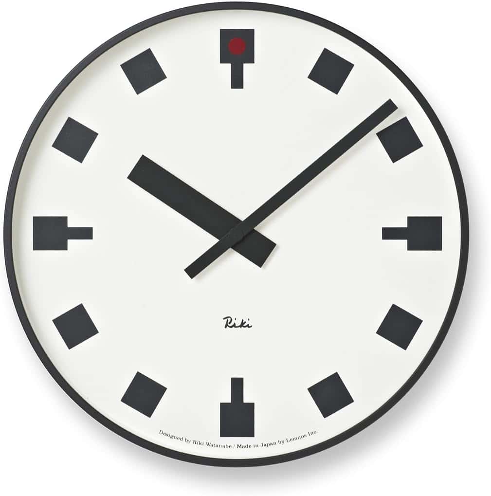 Premiato con il Good Design Award, l’orologio Riki ideato dal designer Riki Watanabe, mostra l’armonia tra le dodici grandi cifre seriformi e le spesse lancette rettangolari.