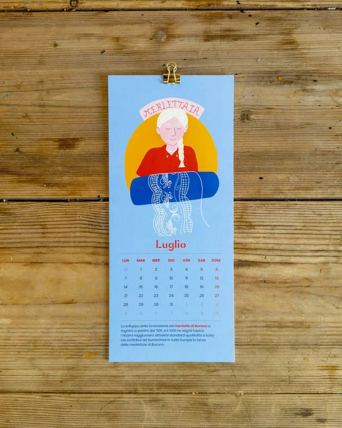 La designer e artista Juls Criveller, specializzata in lettering e illustrazione, realizza ogni anno un calendario a tema differente: per il 2025 i protagonisti sono gli artigiani, gli antichi mestieri che hanno fatto la nostra storia e che si stanno peredendo.