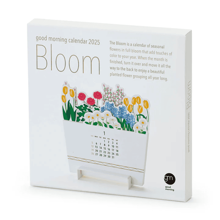 Un calendario da tavolo grazioso e delicato: Bloom è un vaso di fiori che ogni mese si arricchisce di nuovi colori.