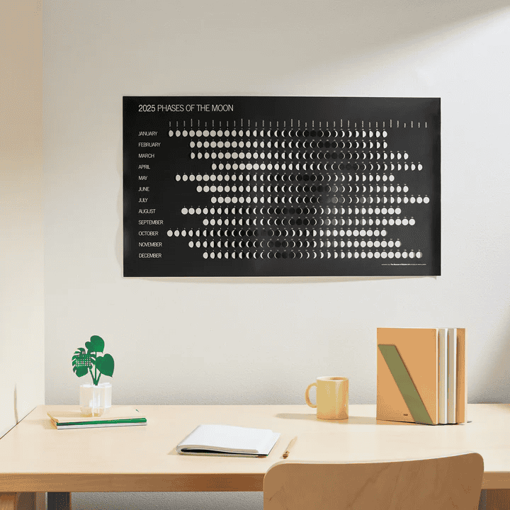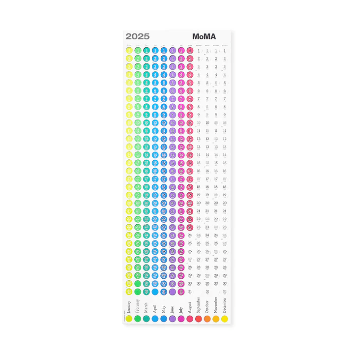 Progettato da Giancarlo Cipri attraverso la collaborazione del MoMA con il programma MFA Products of Design presso la School of Visual Arts, il calendario può essere montato a parete o poggiato sul tavolo.